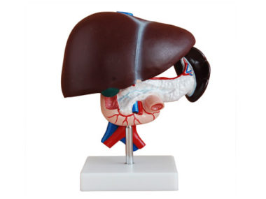 Este modelo demuestra el hígado, el bazo, los vasos sanguíneos...