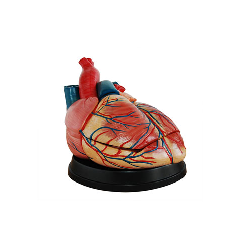 Este modelo muestra la anatomía del corazón humano con arco aórtico, sección coronal de aurícula y ventrículo, válvulas y venas en gran detalle anatómico. Consta  en 3 partes. 4 veces ampliado.